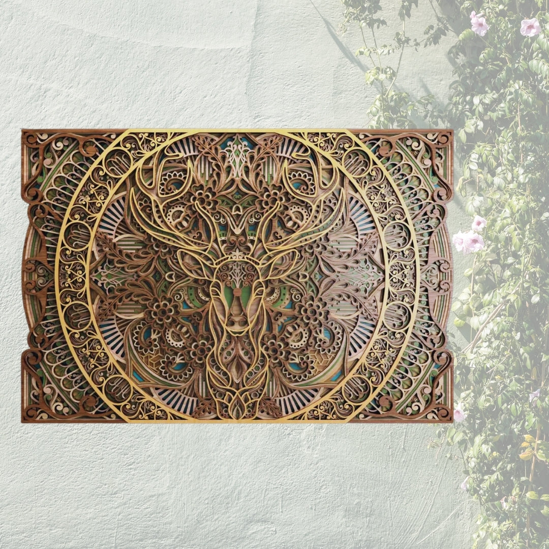 1 × 3D Deer Mandala Wooden Wall Art (57.5 × 39 cm)