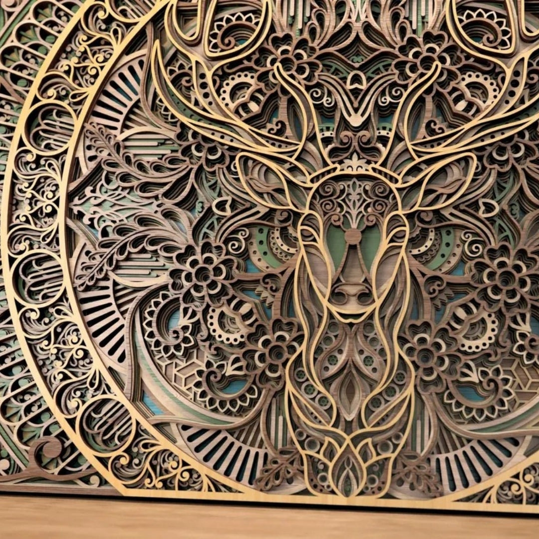 Bring nature, elegance, and exceptional craftsmanship into your home with this 9-layer deer mandala wall art, handcrafted from premium birch plywood. The artwork features a majestic deer surrounded by ornate mandala patterns, laser-cut with microscopic precision and hand-assembled to create stunning depth and shadow.