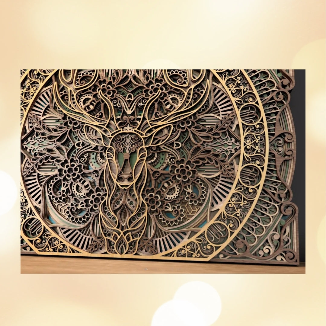 🦌 3D Deer Mandala Wall Art – 9 Layer Handcrafted Birch Wood Décor
