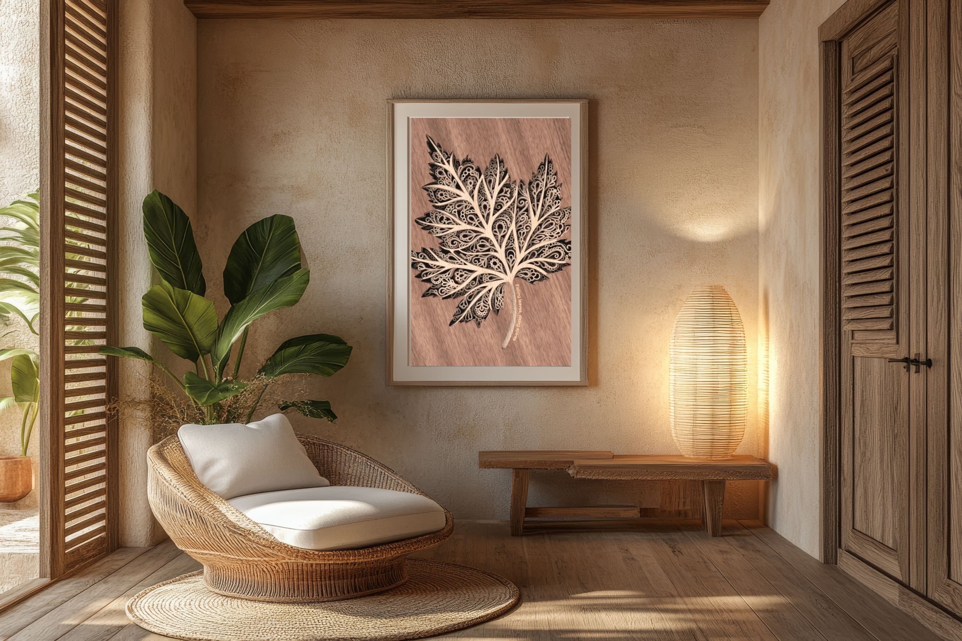 Hand-stained in rich natural tones, each layer adds depth and dimension, making the artwork shift beautifully with changing light. Whether displayed in a living room, office, hallway, or cabin setting, this piece becomes a powerful centrepiece that symbolizes balance, strength, and natural harmony.